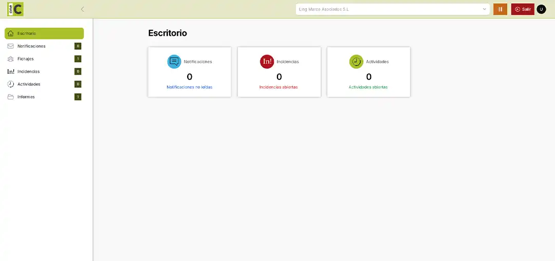 Al acceder al panel de usuario de la aplicación, los usuarios podrán fichar su entrada y salida, pausar y reanudar el tiempo de trabajo, crear actividades para registrar sus tareas realizadas y reportar incidencias para su seguimiento y gestión, todo desde una interfaz intuitiva y accesible.